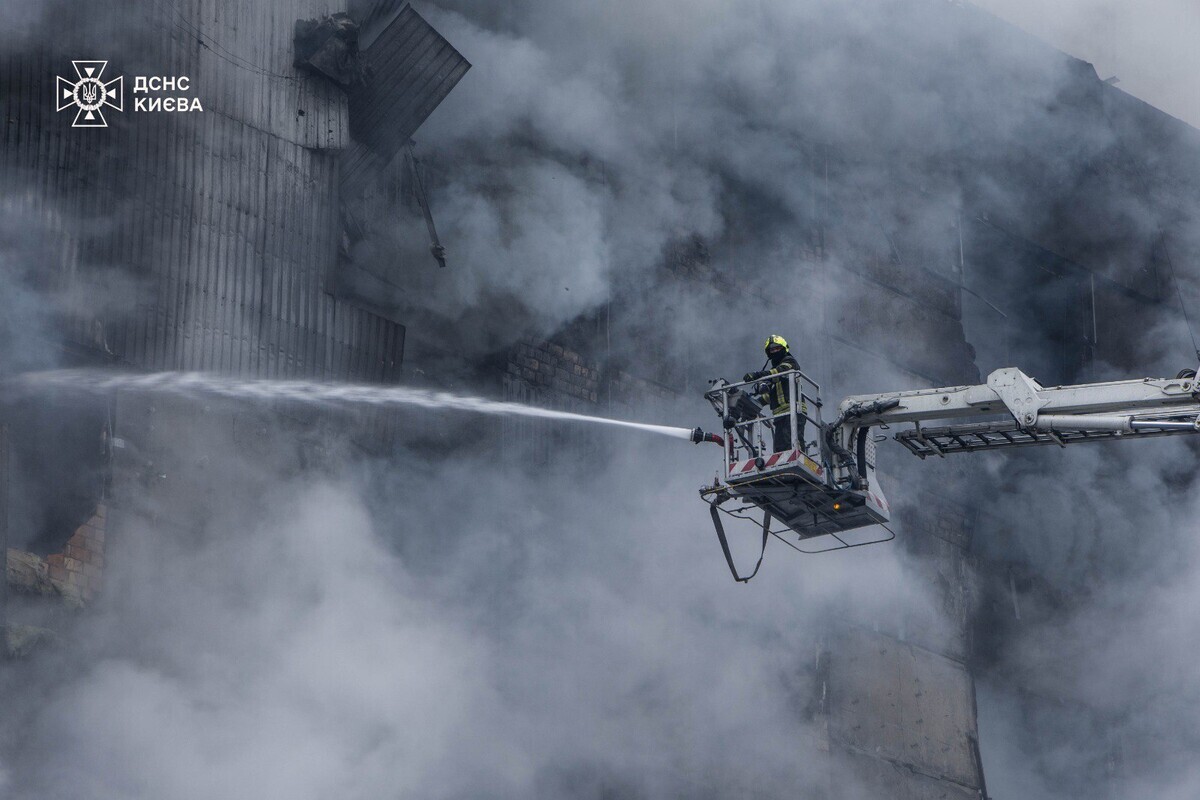 Удар по Києву: рятувальники продовжують гасити пожежі та розбирати завали