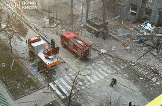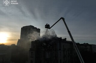 Нагадаємо, 1 січня росіяни атакують Київ ударними безпілотниками. Фіксується падіння уламків ворожої цілі у Печерському районі столиці. Мер Києва Віталій Кличко повідомив, що у житловому будинку на Печерську частково зруйновані два верхніх поверхи. Всі служби працюють на місці. Наразі один постраждалий, його госпіталізували.