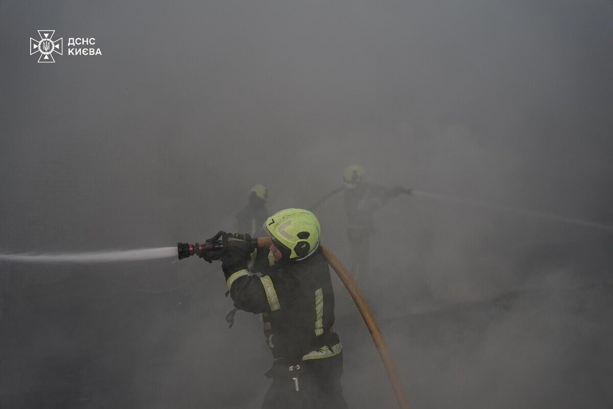 Пожежі в Святошинському районі Києва локалізовані, триває ліквідація наслідків. У ДСНС підтвердили, що внаслідок атаки російських військ постраждали двоє людей.
