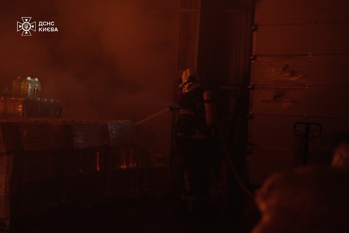 Рятувальники ліквідовують наслідки у Святошинському районі міста. За однією з адрес сталося загоряння в складській одноповерховій будівлі на площі 1500 кв. м, пожежу локалізовано о 06:22.