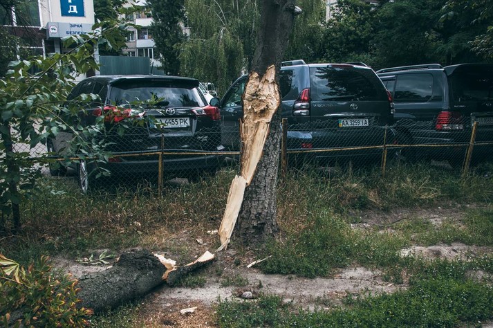 Аварійне дерево на Відрадному двічі побило одну автівку (фото)