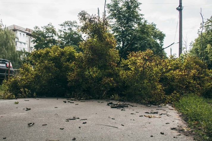 Варто зазначити, що за цією ж адресою буквально через дорогу впало ще одне дерево. Ніхто не постраждав. Але дерево перекрило тротуар. Поки його не поспішають прибирати.