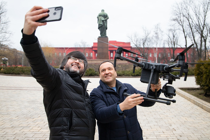 Сьогодні з 9:00 за допомогою дрону проінспектували ділянки мереж від вул. Л. Толстого до бульвару Тараса Шевченка, де у 1995 році було прокладено трубопровід з попередньою ізоляцією, а також ділянку від вул. Б. Хмельницького до Прорізної, де прокладено старі труби з 1970-го.
