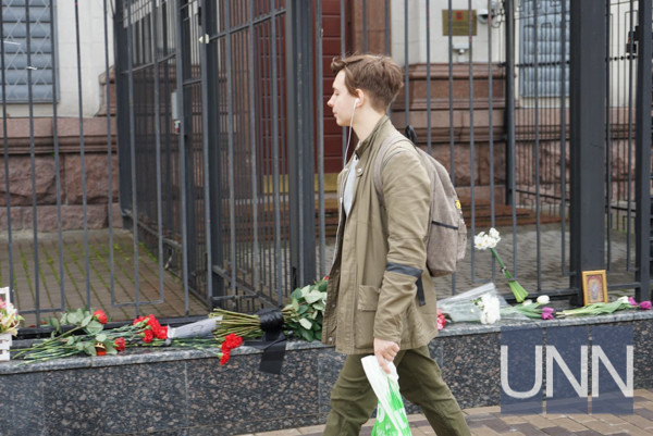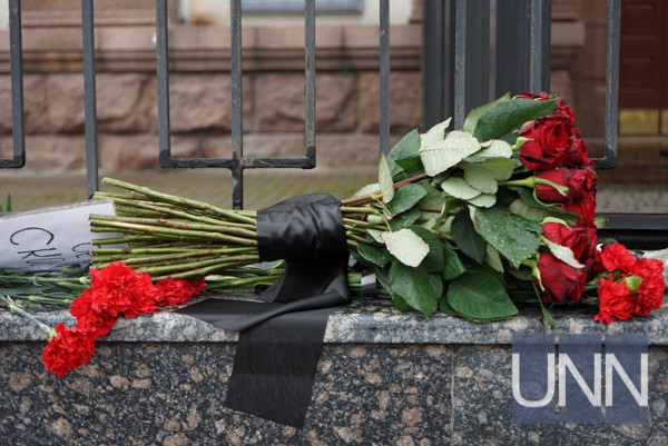 Авіакатастрофа в Росії: кияни несуть квіти до посольства РФ (фото)