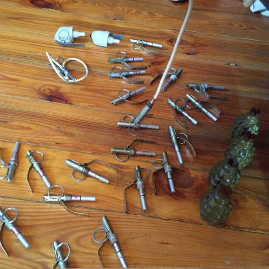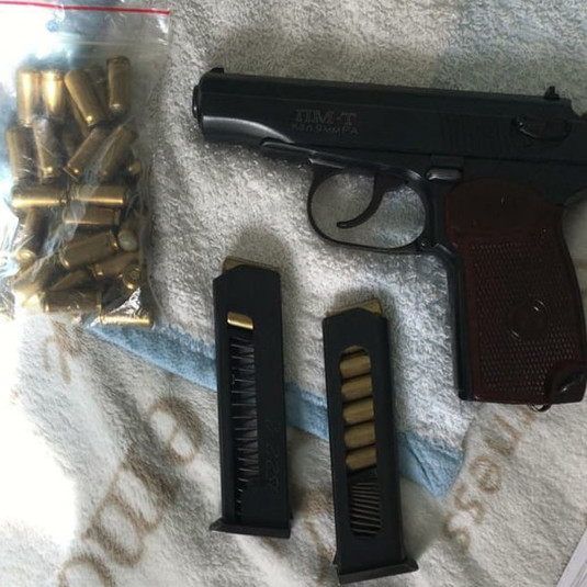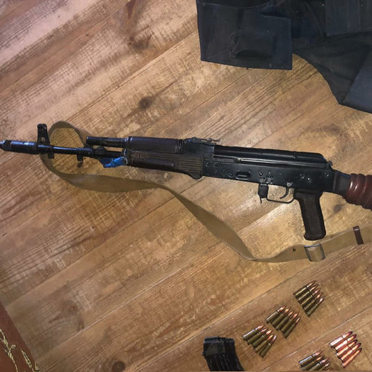 Присутній на брифінгу начальник відділу управління карного розшуку столичної поліції Дмитро Сиченко повідомив, що під час обшуків у фігурантів також вилучили значну кількість зброї, а саме 12 ручних гранатометів, 28 гранат різних систем, більше 5 тисяч набоїв, автоматичну зброю, пістолети, а також запали та 400 г тротилу. Наразі встановлюється походження зброї та боєприпасів. Усе вилучене направлено на експертизу.