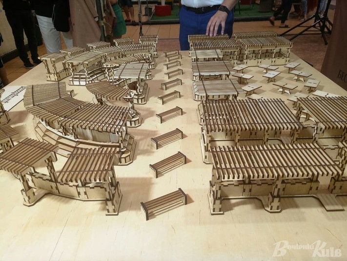 Нові торгові місця будуть зроблені з дерева, оскільки ці конструкції мають значно менше навантаження на підлогу. При визначенні форми прилавків враховувались приклади і досвід в експлуатації різних сучасних ринків, зокрема європейських.