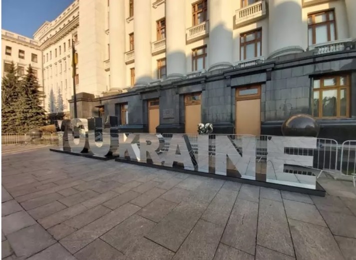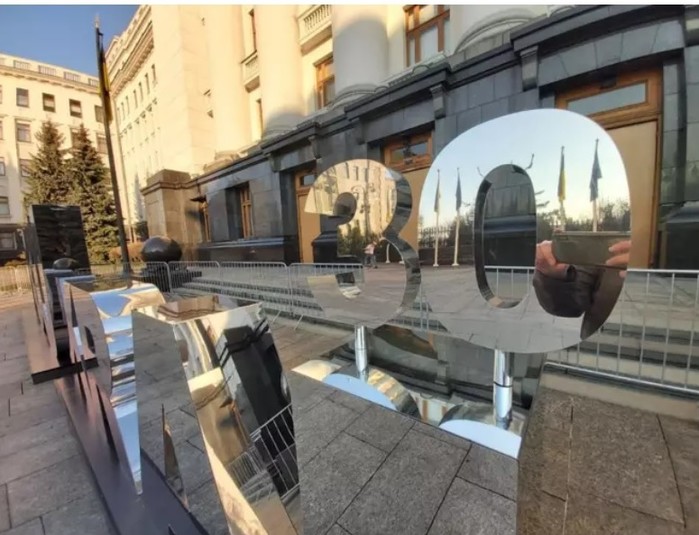 Біля Офісу президента України на вулиці Банковій з'явилася дзеркальний інсталяція, присвячена 30-річчю Незалежності України.
