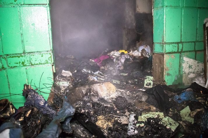 Мешканці будинку в терміновому порядку стали виходити на вулицю. Один з них розповів, що в підсобному приміщенні проживали бездомні, яких туди впускала жінка-двірник. Рятувальники, що прибули на місце пожежі, виявили, що двері в підсобці були прочинені. Всередині приміщення знаходився сміттєпровід, дим яким пішов нагору і поширився практично по всіх поверхах під'їзду. Людям довелося виходити вночі з дітьми на вулицю, поки парадний не провітрити.
