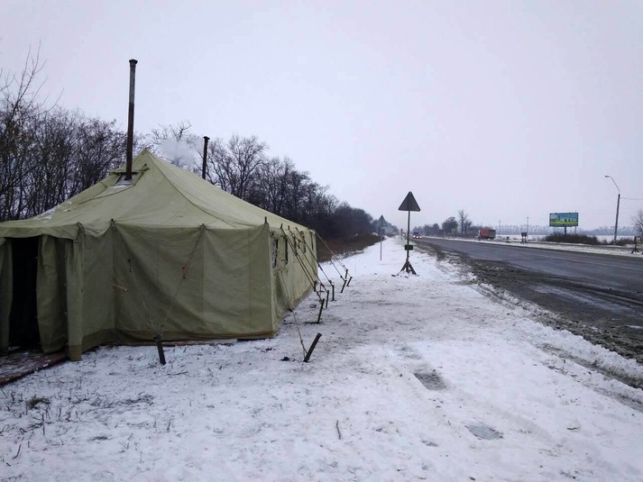 Працівники Державної служби з надзвичайних ситуацій встановлюють пункти обігріву біля автодоріг Київської області. Такі заходи необхідні внаслідок обмеження в’їзду великогабаритного транспорту до Києва, яке буде діяти в ніч з 17 на 18 січня.