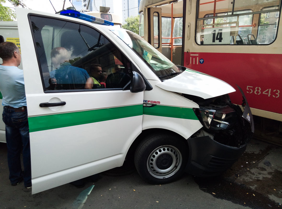 Біля «Берестейської» трамвай протаранив інкасаторський Volkswagen