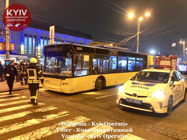 Біля Центрального залізничного вокзалу Києва загорівся тролейбус (фото)