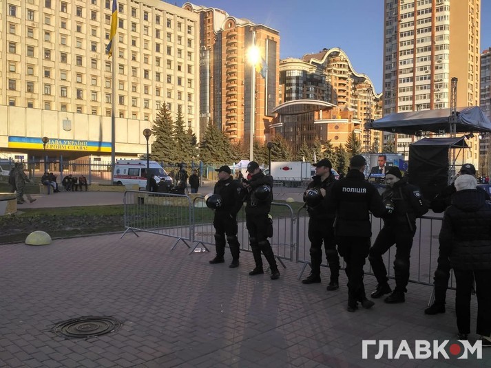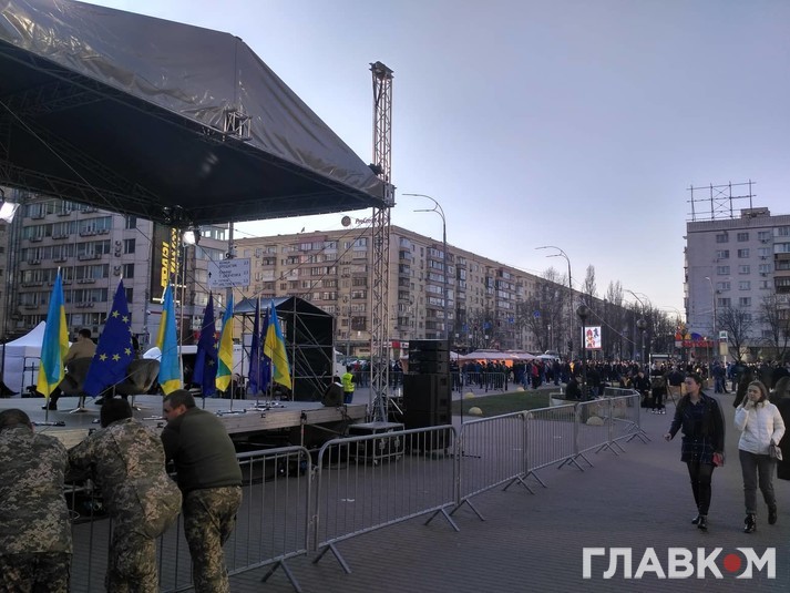Як повідомляє кореспондент «Главкома», десятки молодих людей знаходяться на площі, однак вони не мають доступу до центральної частини площі навпроти входу до ЦВК, оскільки ця частина огороджена металевим парканом і там стоять правоохоронці.