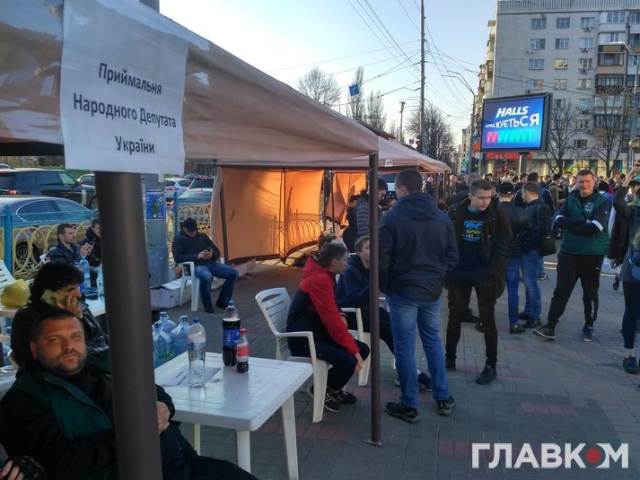 Частина молодих людей сидить у наметах з написом «Приймальня народного депутата України». Сутичок на місці події немає. Біля ЦВК присутня поліція і Національна гвардія.