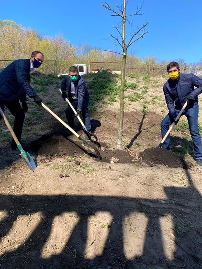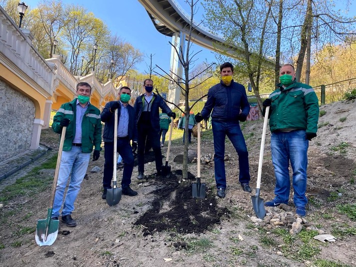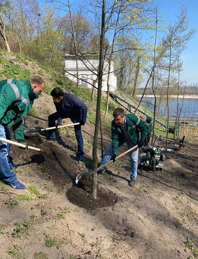 Сьогодні, 9 квітня, продовжилося озеленення схилів біля пам’ятника Магдебурзькому праву. Там висадили ще 10 червоних дубів.