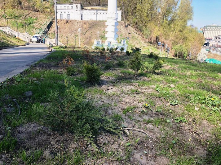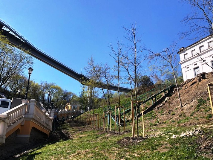 «Озеленення схилів триватиме – попереду висаджування 10 катальп, 10 сосен, а також 150 кущів плюща звичайного», - додали у Київзеленбуді і нагадали, що дерева та кущі висаджуються на місці видалених взимку аварійних, сухостійних та фаутних дерев.