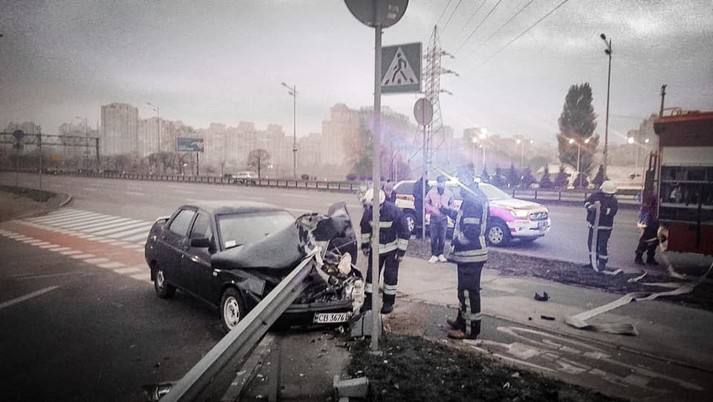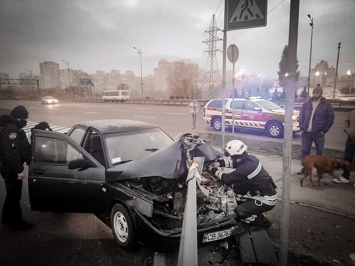 У неділю, 29 листопада, на проспекті Бажана у Дарницькому районі столиці сталася дорожньо-транспортна пригода: автомобіль ВАЗ-2110 здійснив зіткнення з відбійником.