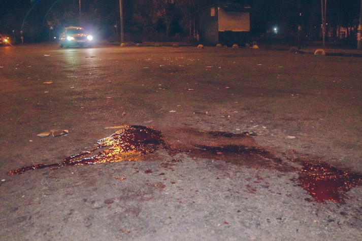 Очевидець розповів, що він їхав в сторону Лісового масиву на своїй машині, коли побачив бійку на проїжджій частині. За його словами, близько п'яти чоловік запекло били двох чоловіків. Вони вистрілили в одного з пневматичної зброї і розбили йому обличчя, після чого потерпілий підбіг до автомобіля кривдників і почав ламати двері. Нападники повалили його на асфальт і били ногами. Потім чоловіка вдарили головою об кут автобуса, який стояв поруч. За словами свідка, чоловік, який постраждав, був ініціатором бійки.