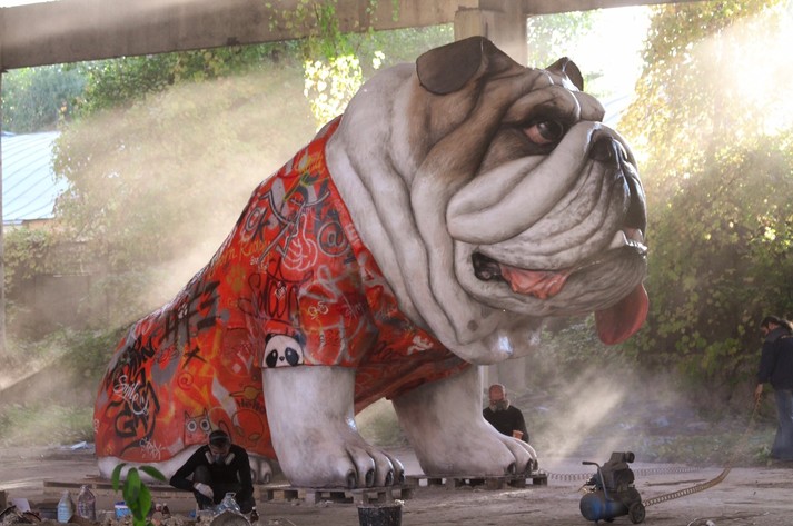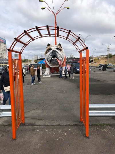 Біля метро «Почайна» з’явилася п’ятиметрова статуя бульдога (фото)