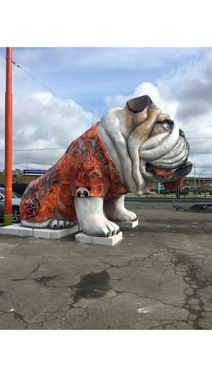 Поблизу станції метро «Почайна» в Києві встановлено величезну статую собаки породи «англійський бульдог». Її створили скульптори Олег Годунов та Іван Длугунович.