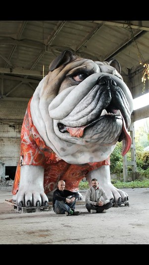 «Ми вирішили зробити сюрприз для столиці нашої України. Тепер у місті Київ житиме англійський 5-метровий бульдог (поки що найбільша скульптура, яку ми створили)», - написав Годунов на своїй сторінці у Facebook.