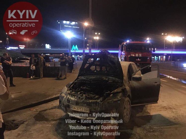 Біля метро «Позняки» на ходу загорілася Mazda (фото)