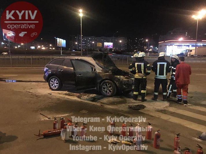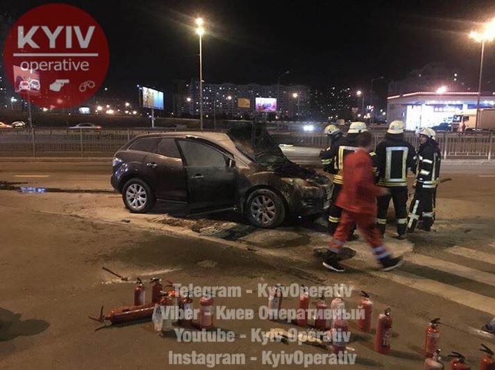 16 травня пізно ввечері на проїжджій частині дороги на вул. Мишуги, 5, біля метро «Позняки» в автомобілі Mazda CX-7 виникла пожежа. Повідомлення про загоряння надійшло до оперативно-координаційного центру Головного управління ДСНС України у м. Києві о 22:53, інформує прес-служба столичних рятувальників.
