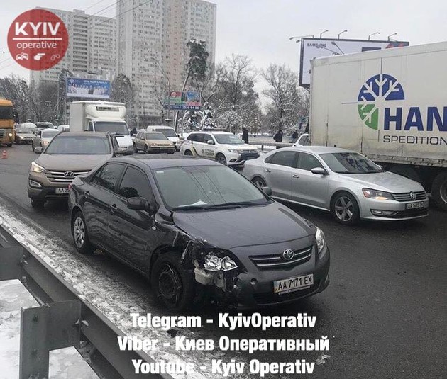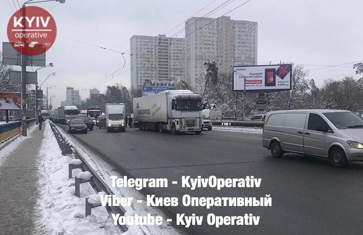 Через аварію на дорозі виник затор, рух транспорту на виїзд з Києва серйозно ускладнено.