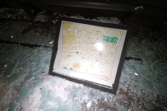 Навколо металевих конструкцій залишилися множинні осколки скла. Хто і навіщо це зробив - невідомо. В результаті були розбиті секції задньої стіни конструкції. Подібні зупинки встановлюють по всьому Києву вже не перший рік.