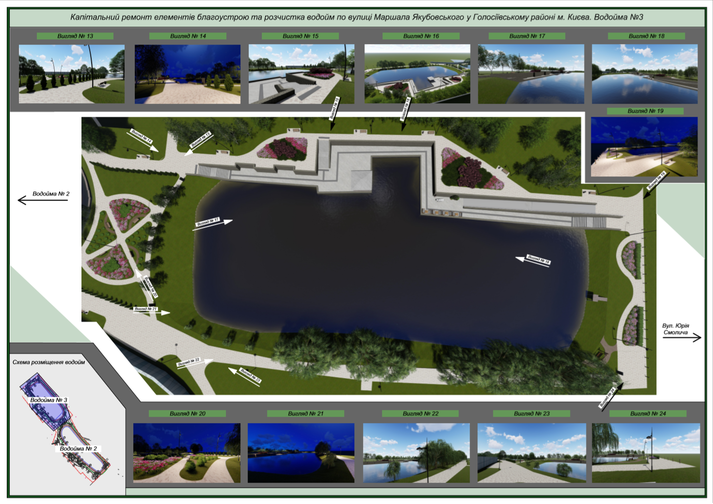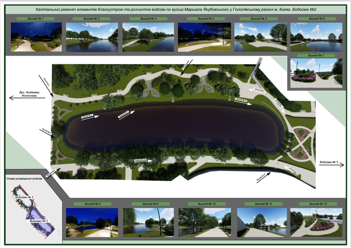 «Місцева громадськість активно виступила з проханням розчистити ці озера та благоустроїти територію. Тим більш, що там відпочивають мешканці не лише цього житлового масиву. Згідно з проєктом, розчистимо водойми від мулу та побутового сміття, побудуємо нові сходи до водойм із інклюзивними елементами, створимо та оновимо променадну зону, влаштуємо спеціальні місця для годівлі качок, а також нову геопластичну терасу для відпочинку, освітлення та навігаційну систему з використанням тактильної плитки», – розповів в. о. начальника Управління екології та природних ресурсів КМДА Олександр Савченко.