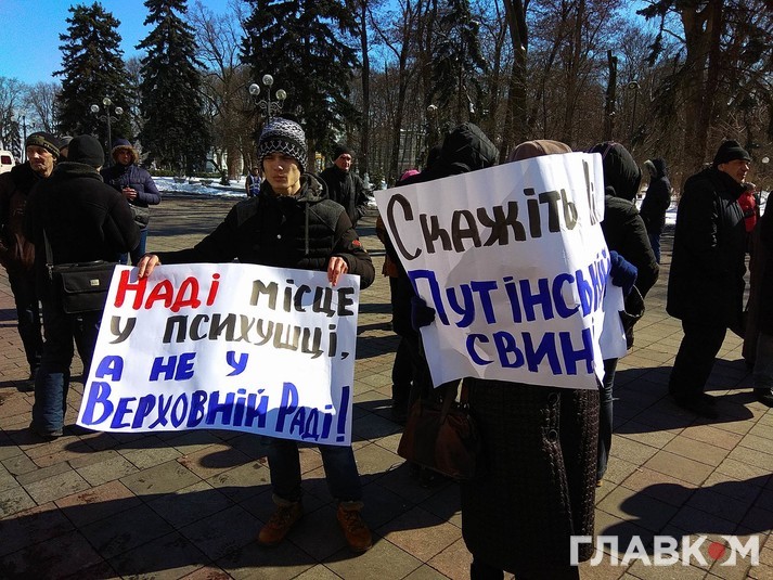 Зокрема, ще о 9 ранку до Ради на мітинг прийшли люди, які вимагають якнайшвидшого позбавлення недоторканності Надії Савченко та притягнення її до кримінальної відповідальності. Люди прийшли з плакатами з гучними гаслами «Надію Савченко під арешт», «Надію Савченко на нари». Акція мирна, головна думка мітингувальників полягає в тому, що вони просто не розуміють дій Надії Савченко.