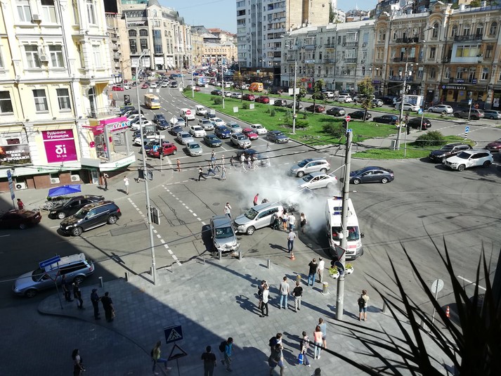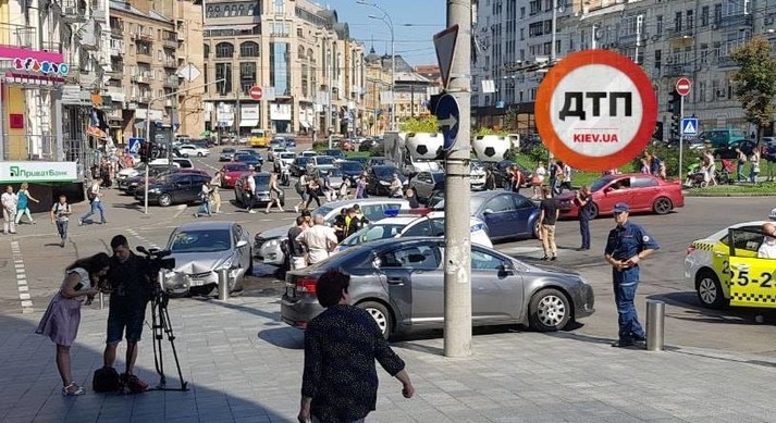 У вівторок, 31 липня, в Києві на вулиці Басейній зіткнулися Volkswagen Beetle, Hyundai і Toyota.