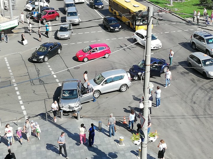 За попередніми даними, Volkswagen Beetle їхав по Басейній в сторону ТРЦ «Гулівер» і не зупинився на червоне світло світлофора. Через це він зіткнувся з Hyundai і Toyota, які їхали по Басейній з боку бульвару Лесі Українки.