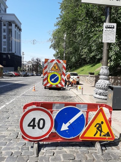 Зокрема, на перехресті вулиць Боричів узвіз та Сагайдачного/Володимирський узвіз було встановлено дорожні віхи на розгалуженні смуг руху в бік Володимирського узвозу та вулиці Сагайдачного.