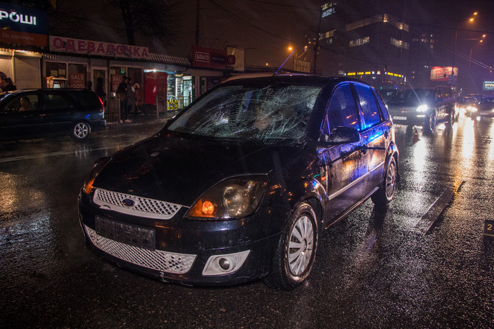 У середу, 14 листопада, в Києві на проїжджій частині навпроти Виставкового центру сталася ДТП: автомобіль Ford Fiestа збив пішохода.