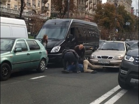 Зчепилися вони на центральній вулиці Києва, перед вікнами мерії. Забіяки лежали на проїжджій частині Хрещатика. Рознімати їх прибігли інші водії.