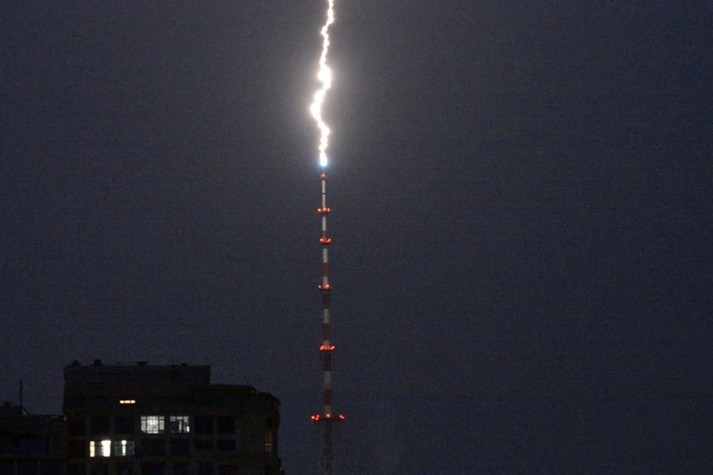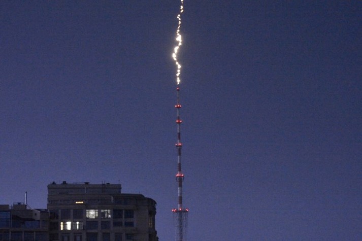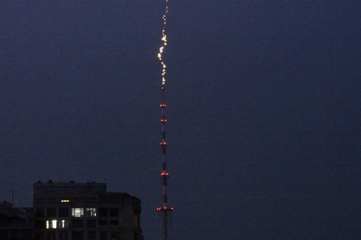 Ввечері 14 червня блискавка влучила у Київську телевежу, яка розташована у житловому масиві Сирець.