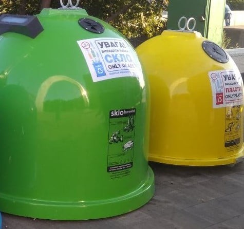 В рамках пілотних проектів «Київкомунсервіс» для роздільного збору відходів встановив у Солом'янському районі 2 контейнери окремо для пластику та скла.