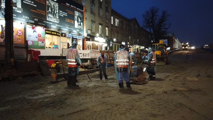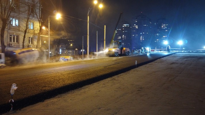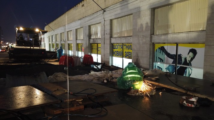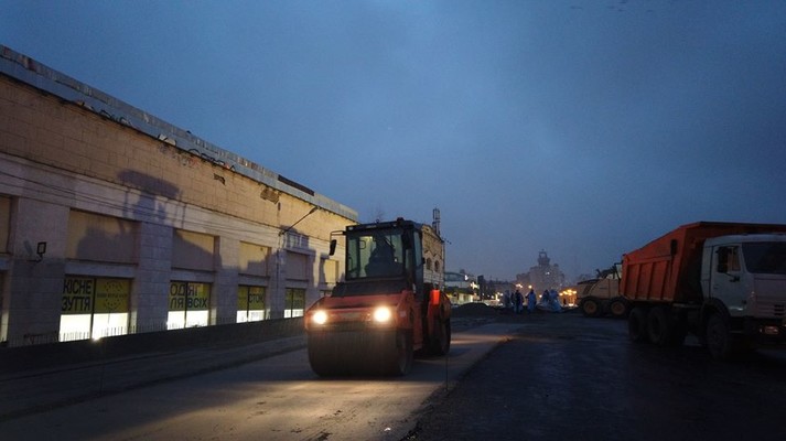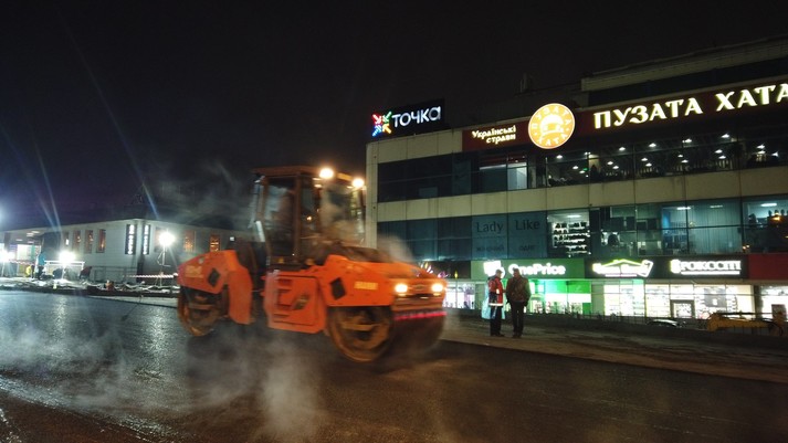Паралельно з цим будівельники асфальтували сторону з'їзду з мосту на вулицю Гетьмана.