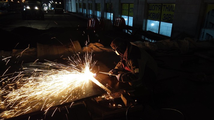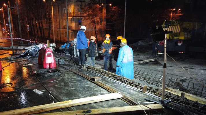Будівельники навіть у святкові і вихідні дні цілодобово працюють, щоб запустити рух Шулявським шляхопроводом з вулиці Довженка на вулицю Вадима Гетьмана до кінця цього року.