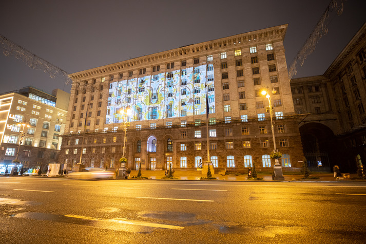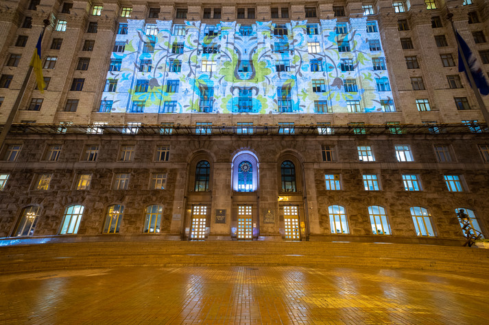 Будівля мерії Києва засяяла кримськотатарським орнаментом (фото)