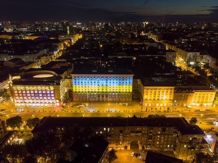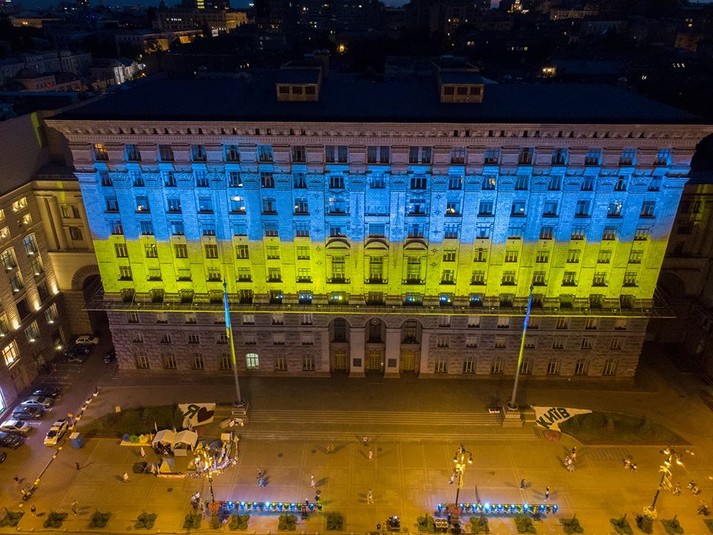 Будівлю КМДА підсвітили кольорами прапора України (фото)