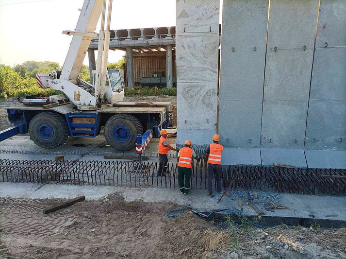 За його словами, наразі на ділянці від вул. Сім’ї Кульженків до вул. Богатирської влаштовують насип земляного полотна, шумозахисний екран, підпірну стінку ПС-1 і ПС-2, добудовують підземний пішохідний перехід та проводять будівельно-монтажні роботи на двох транспортних розв’язках на перетинах із залізницю та вул. Богатирською.