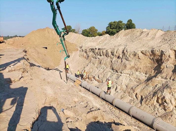 Одночасно виконують роботи з прокладання інженерних мереж: водопроводу, ливневої каналізації, очисних споруд, магістрального газопроводу, електромереж із трансформаторними підстанціями тощо.
