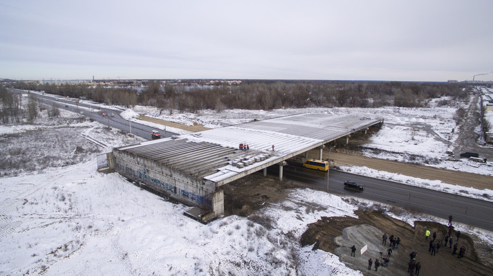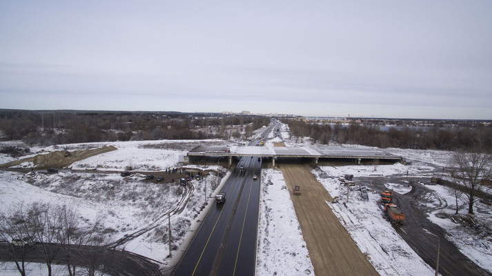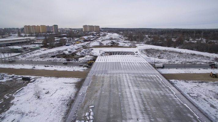 На вулиці Богатирській вже спорудили основну конструкцію мосту над дорогою, розширили проїжджу частину під заїзди та з’їзди з мосту. Також влаштовано асфальтобетонне покриття основного проїзду – «Вишгород-Київ». Роботи, що можливі за технологією, тривають і в зимовий період. Також частково виконані роботи з будівництва шляхопроводу через залізницю – будівельники фактично змонтували каркас об’єкту. Частково влаштували насип земляного полотна від вулиці Сім’ї Кульженків, а також тунельну частину підземного пішохідного переходу.