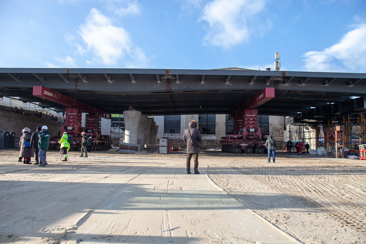«Конструкцію вагою понад 540 тонн буквально за 40 хвилин перемістили у проєктне положення. Після стикування частин мосту розпочнуться дорожні роботи: влаштування асфальтобетонного покриття та встановлення технічних засобів організації дорожнього руху. Наразі продовжується спорудження підходів шляхопроводу із вулиць Вадима Гетьмана та Олександра Довженка, лівоповоротних і правоповоротних з’їздів. Фахівці прокладають інженерні мережі, зокрема, контактну мережу та зовнішнє освітлення», – розповів Поворозник.