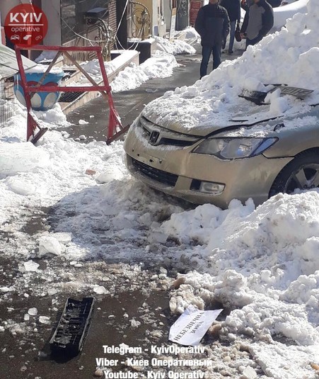 «Так, щойно на Антоновича, водій автомобіля Honda знехтував табличкою «небезпечна зона» і припаркував свій автомобіль, за що й поплатився - великий шмат льоду впав йому прямісінько на капот», - йдеться в повідомленні.