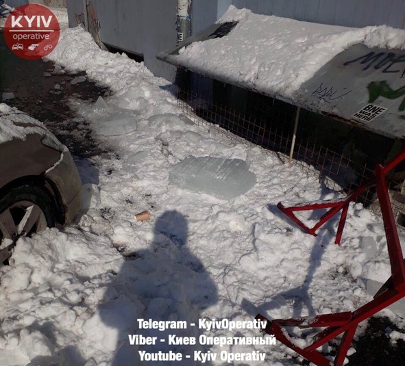 Великий шмат льоду впав на автомобіль на вул. Антоновича