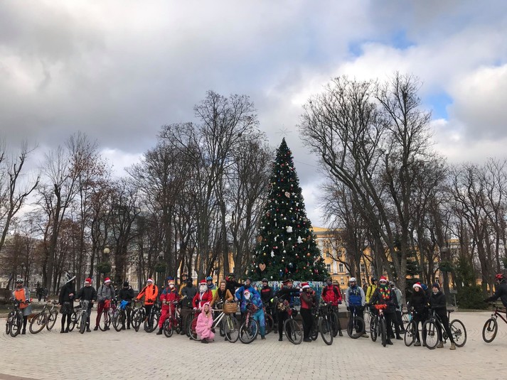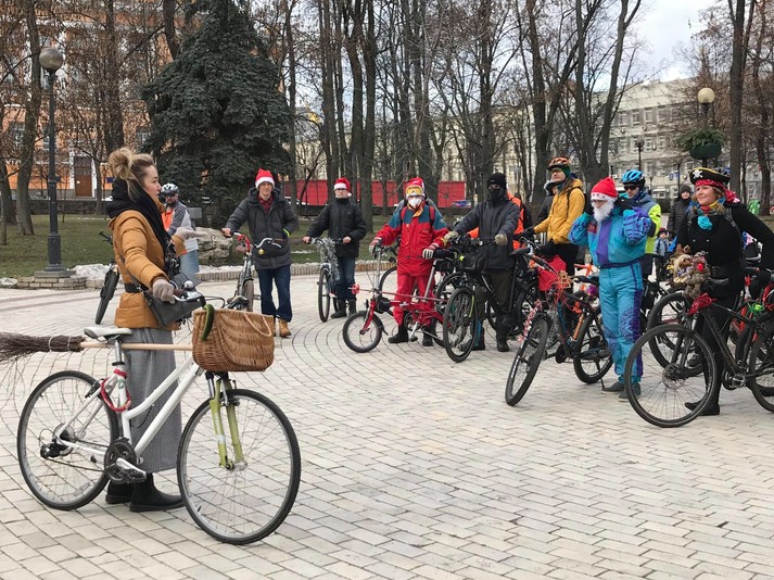 Учасники велопараду проїхалися новорічними локаціями, взяли участь у конкурсах, зокрема на найкращий «чарівний» новорічний костюм.