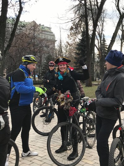 Центром Києва на велосипедах проїхалися Санта-Клауси, чарівники, пірати (фото)