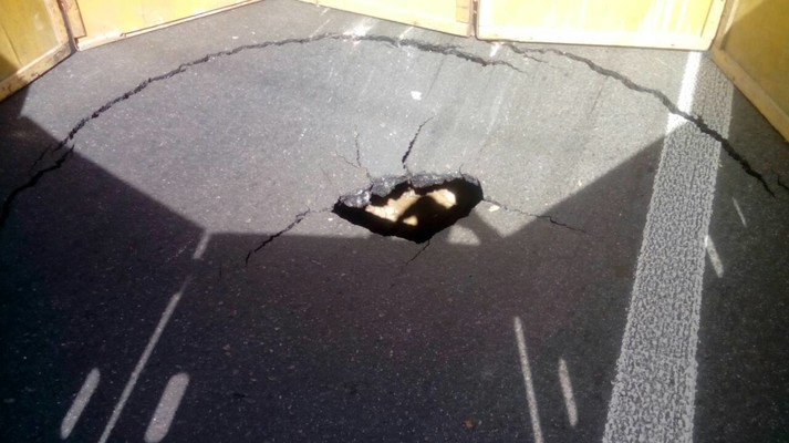 Місце провалу огороджене, встановлені попереджувальні дорожні знаки та організовано дорожньо-транспортний рух.